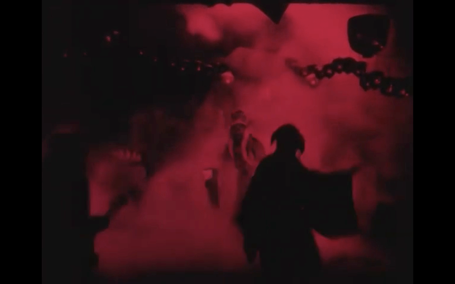 Fig 1. Cave of the Silken Web (Pan Si Dong, Dan Duyu, 1927). A climactic fight scene, in a blaze of red.