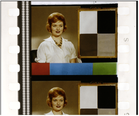 LW: The Timeline of Historical Colors in Photography and Film includes some examples of “China Girl” or “Shirley Cards”, which show colour swatches and grayscale cards, and, offer a point of reference for colour grading throughout the processing, developing and printing of photochemical film[iii]. Have you encountered any China Girl images in the films digitised by Scan2Screen? If so, do they offer a point of reference for understanding the effects of colour fading in the digitisation of authentic colour films?