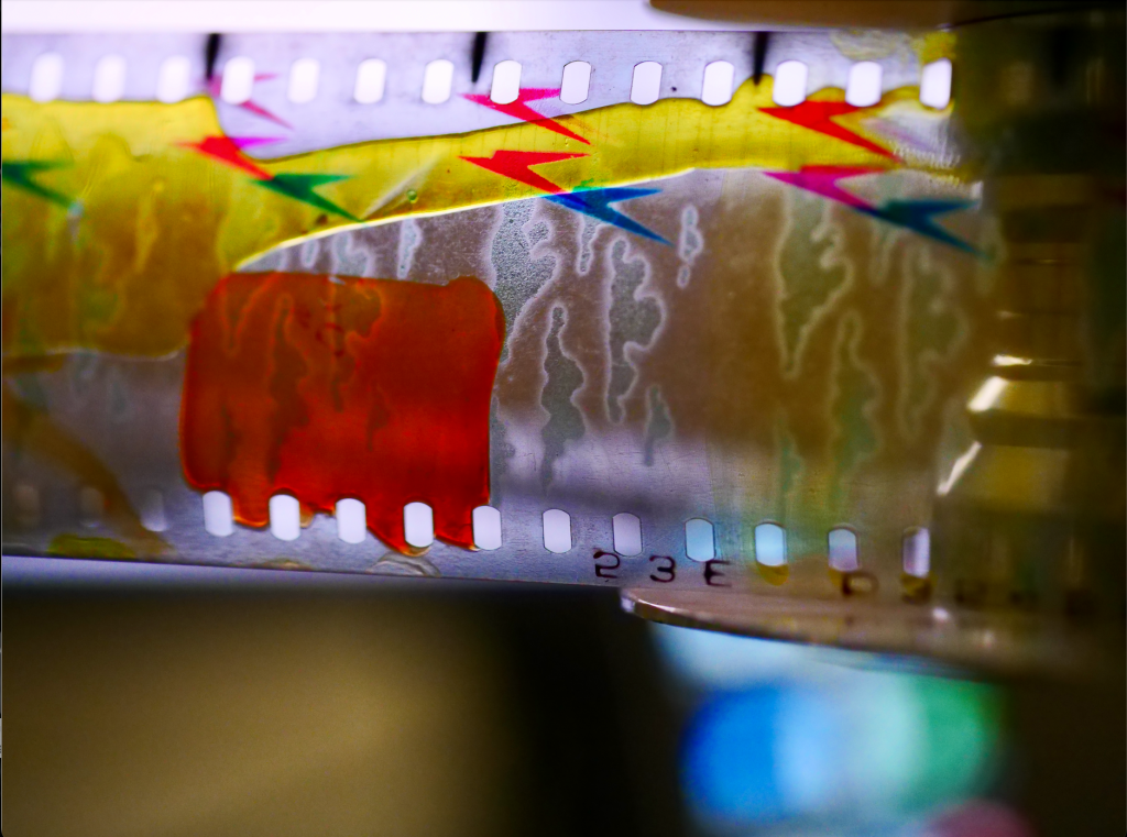 Careful attention to these material traces is one of the most foundational aspects of our work. They are often visible in non-image parts of the film, particularly in the perforation area.