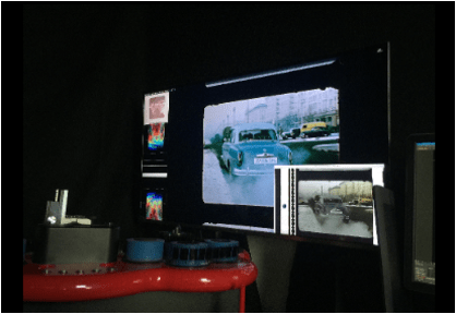 Barbara Flueckiger is founder and CEO of Scan2Screen. The company was formed in response to a technical review which found that some commercial scanners are unable to capture the full width of the analogue film print, cutting off manufacturer’s marks, perforations which vary in shape and size, date codes, and edge codes. Further, that some film colours remain outside of the gamut of hues that commercial scanners are able to record. Throughout these projects, Flueckiger’s research has focused on the effects of ‘the transformation of historical films as tangible objects by the processes of digitisation.’[i] The research has highlighted and analysed the effects of the digital workflows, which form part of the provenance of film images as they are scanned and then accessed via DVD, Blu-Ray, or online streaming. Vitally, the projects explore the effects of digitisation processes on ‘intangible’ colours in aesthetic and textual analyses of film.[ii]