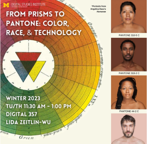 Dr Lida Zeitlin-Wu (University of Michigan) will discuss “Color, Race, and Technology in the Digital Studies Classroom.” Lida Zeitlin-Wu will talk about the class that she has taught for the past two years at the University of Michigan called “From Prisms to Pantone: Color, Race, and Technology,” which is an upper-division elective cross-listed between Digital Studies, Film, TV, and Radio, Architecture, and American Studies. Read more