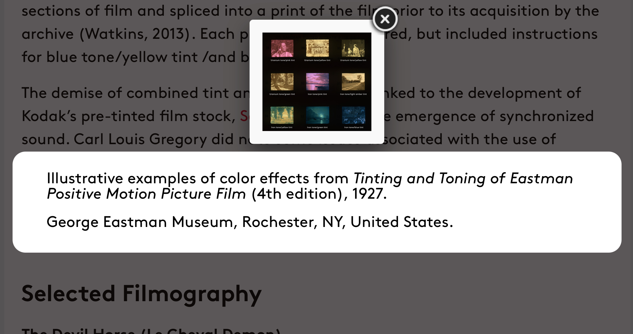 Film Atlas. An interactive guide to every motion picture film format, soundtrack, 3-D and color process ever invented (open access) edited by James Layton was launched in May 2025. The Film Atlas is a collaboration between the International Federation of Film Archives (FIAF) and the George Eastman Museum. The Film Atlas includes entries (essays, film fragments, bibliographies, technical information) on black-and-white and colour film stocks (e.g. Anscochrome, Three-color Technicolor, Eastman Color (1949-1982)), pre-coloured film stocks (eg. Sonochrome), and applied colour techniques (e.g. hand-colouring, tinting, toning, tinting and toning (combined)), and their uses. There is a piece on Luke McKernan’s blog, titled ‘Every Format, Everywhere, All At Once’, which is about the Film Atlas. An amazing resource.